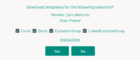 For multiresolution auctions, you will find templates for all the available resolutions in different tabs in the bottom of the Excel sheet. If you want to download templates only for a specific resolution, you must select this on the left side of the Auction platform before downloading the templates.